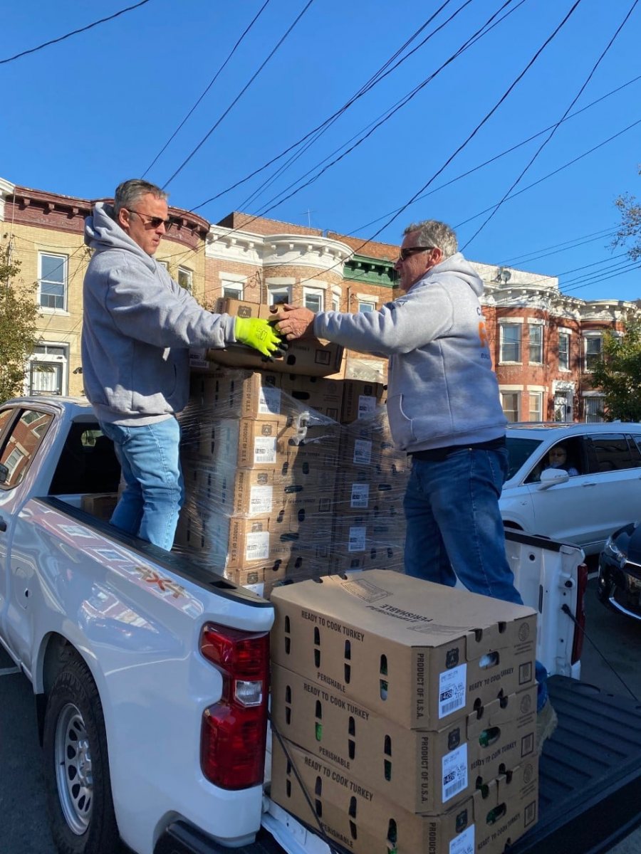 Continuing an over six-year tradition of donating turkeys in honor of their parents, Al and Maria Catanese donated 700 turkeys this year. EJ Electric, the New York City District Council of Carpenters, Local 638 Steamfitters Union, and Univision also donated frozen turkeys.
