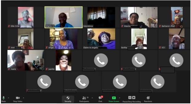 Catholic Charities Community Outreach Services kincare groups Relatives as Parents Program (R.A.P.P.) and Grandmothers as Mothers Again (G.A.M.A.) continue to meet virtually each week via Zoom. Our group members began the session with a laugh as they discussed their most embarrassing moments. Later, they were treated to a presentation from Fidelis Care representatives, Patricia Mahecha, Fred Tantao and Gelin D, who spoke about the various services and resources available. To conclude the meeting, Janessa Rose from Motivational Monsters spoke about the importance of self-care, positivity and more!