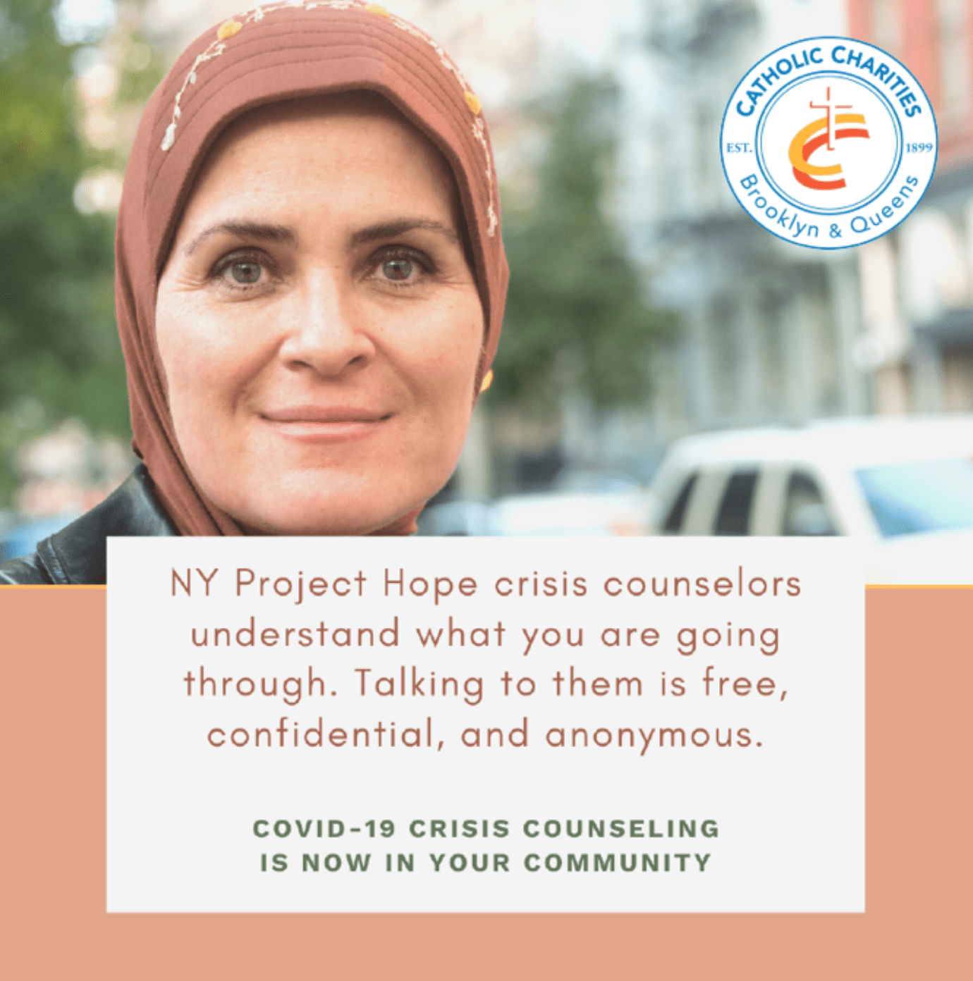 COVID-19 emotional support, coping tips, and resources are available for Brooklyn and Queens through Catholic Charities Brooklyn and Queens, a NY Project Hope provider. Call our free and confidential helpline at 929-268-3321 or call our Call Center at 718-722-6001, Monday — Friday, 9 AM to 5 PM for more information.