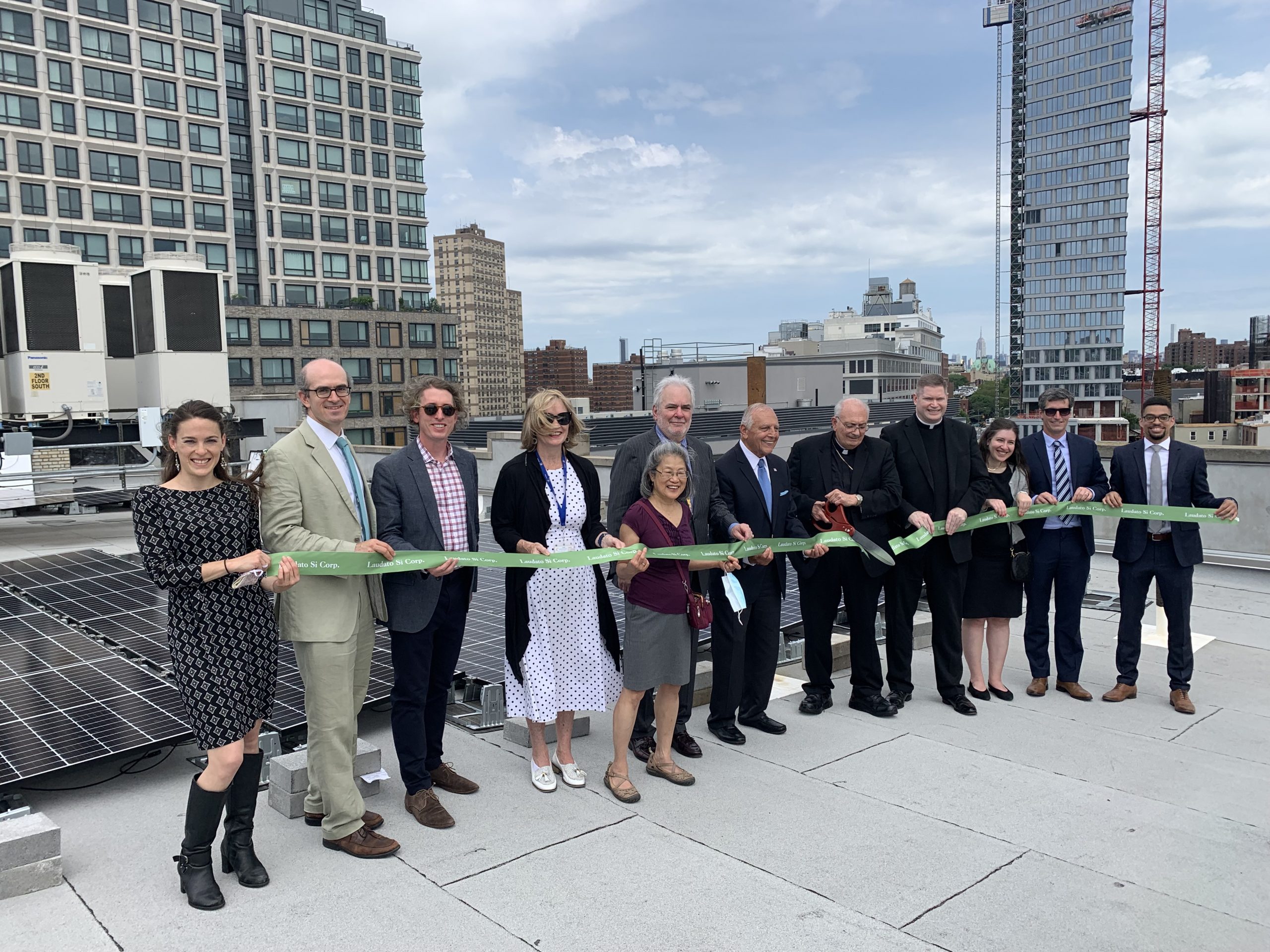 Brooklyn, NY— The Most Reverend Nicholas DiMarzio, Bishop of Brooklyn, joined Very Reverend Patrick J. Keating, Esq., Deputy Chief Executive Officer, Catholic Charities Brooklyn and Queens and community members today for a Ribbon-Cutting Ceremony to celebrate the launch of Catholic Charities Brooklyn and Queens’ Laudato Si Corporation, a new green initiative focused on climate change. The Catholic Charities Brooklyn and Queens Laudato Si Corporation will generate renewable energy by installing new solar photovoltaic systems on the roofs of four existing, and future, affordable housing developments in the housing portfolio of Catholic Charities Progress of Peoples Development Corporation (CCPOPD), the affordable housing developer of Catholic Charities Brooklyn and Queens. Catholic Charities Brooklyn and Queens is one of the largest faith-based social service agencies and providers of affordable housing in the United States and currently provides 4,330 units of affordable homes, with 240 additional units currently under construction.