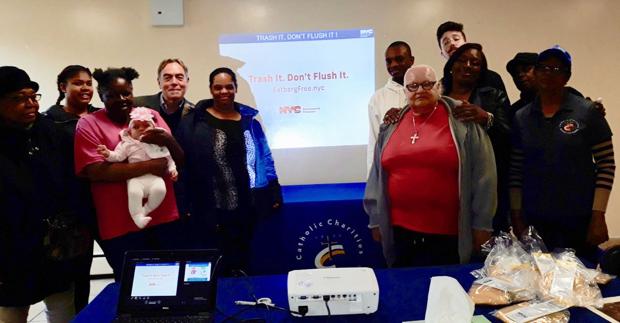 CCBQ’s Relatives as Parents Program (R.A.P.P.) recently received a visit from the NYC Department of Environmental Protection (DEP). Held at the Riverdale Osborne Towers in Brownsville, Brooklyn, instructors Charles Sturcken and Eva Lynch spoke to our participants about the DEP’s new “Trash It. Don’t Flush It” awareness campaign that educates New Yorkers on how to properly dispose of grease, wipes and other trash to avoid costly damage. They also provided guests with rubber gloves, pencils and pen sharpeners. Additionally, Andrew Simontacchi from ClearCaptions spoke to members about free telephone services for the hearing impaired.