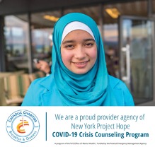 Fight back against COVID-19 and take control of your mental health with support from Catholic Charities NY Project Hope trained crisis counselors. Available from 9 AM to 5 PM, Monday — Friday to help you cope with the emotions brought on by COVID. Call 929-268-3321 or call our Call Center at 718-722-6001 for more.